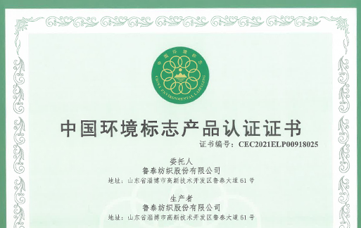 魯泰紡織公司-中國環(huán)境標(biāo)志產(chǎn)品認(rèn)證證書